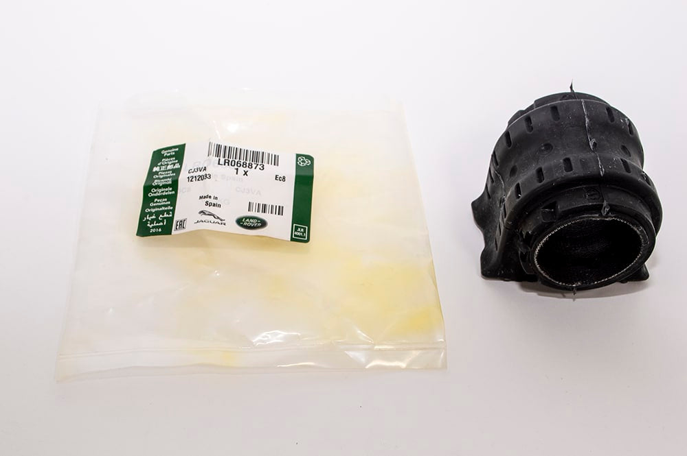 LR068873 is the Manufacturer Part Number for a Land Rover stabilizer bar insulator. It is a genuine part, specifically for Range Rover and Range Rover Sport models. These are also known as Trailblazer Bar Bushes. The part is typically sold as a set of two.